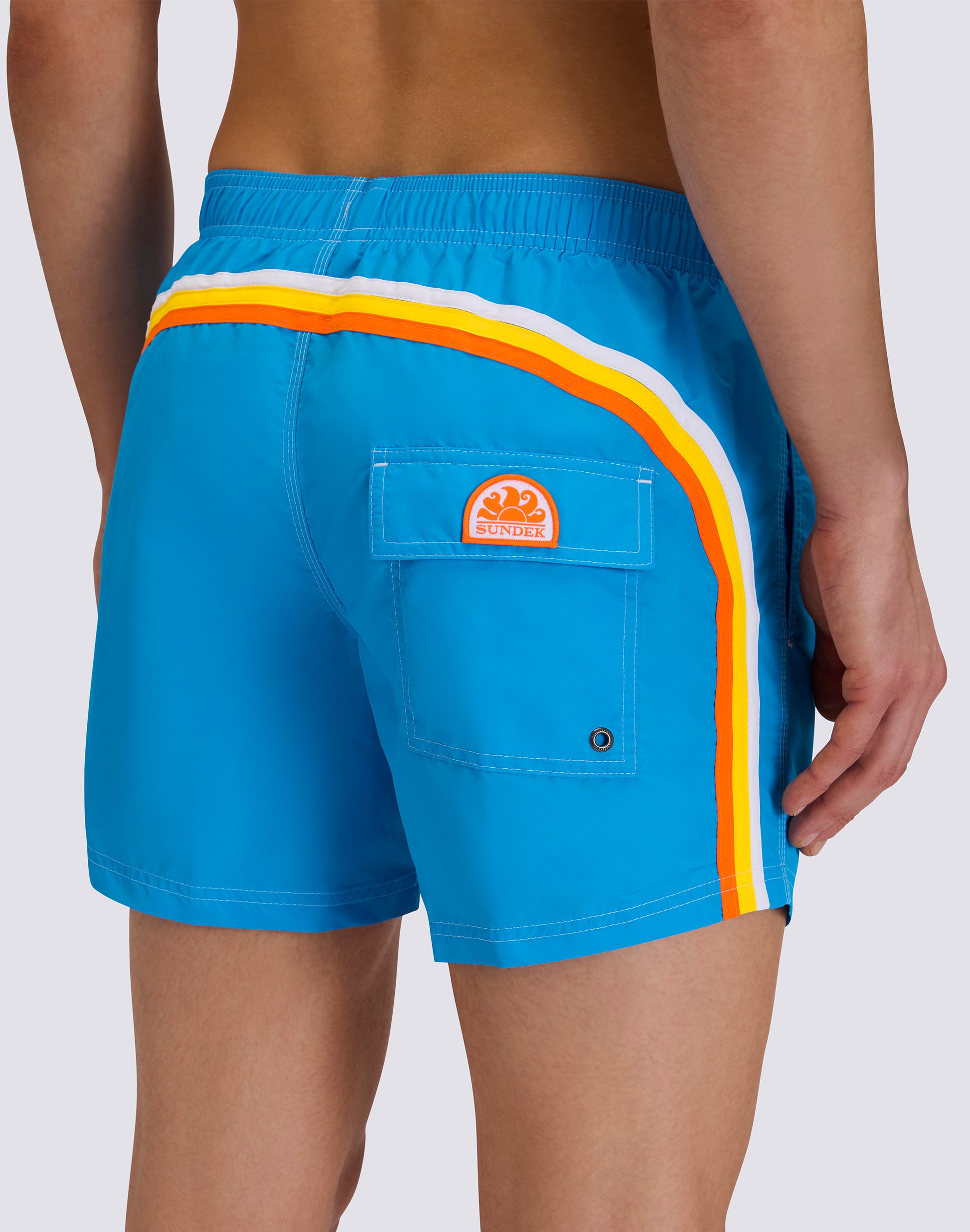 Le maillot de bain court pour homme M504BDTA100 incarne l'essence même du style Sundek : l'équilibre parfait entre un design emblématique, un confort absolu et la qualité. Ce short de bain à taille élastiquée est le compagnon idéal pour celles qui recherchent une liberté de mouvement, un séchage rapide et un style incomparable. Fabriqué à 100 % en nylon-taffetas, le tissu qui a fait la renommée de Sundek depuis 1958, ce maillot de bain offre une texture soyeuse au toucher, une légèreté exceptionnelle et une résistance extraordinaire. Son séchage ultra-rapide vous garantit un confort immédiat, tant dans les vagues qu'hors de l'eau, pour passer sans effort de la plage à l'apéritif. Caractérisé par l'arc-en-ciel Sundek unique au dos, symbole de l'authenticité et de l'héritage de la marque, ce short de bain présente une taille élastiquée avec cordon de serrage réglable pour un ajustement personnalisé. Les coutures à trois aiguilles garantissent une résistance et une durabilité maximales, même après d'innombrables sessions de surf, de natation et de bronzage. Polyvalent et performant, parfait pour le surf, la natation, le beach-volley et les loisirs, ce short de bain pour homme allie performances techniques et style décontracté. Sa longueur de 35 cm (en taille M) offre une coupe moderne et sportive, idéale pour ceux qui aiment la liberté de mouvement.
