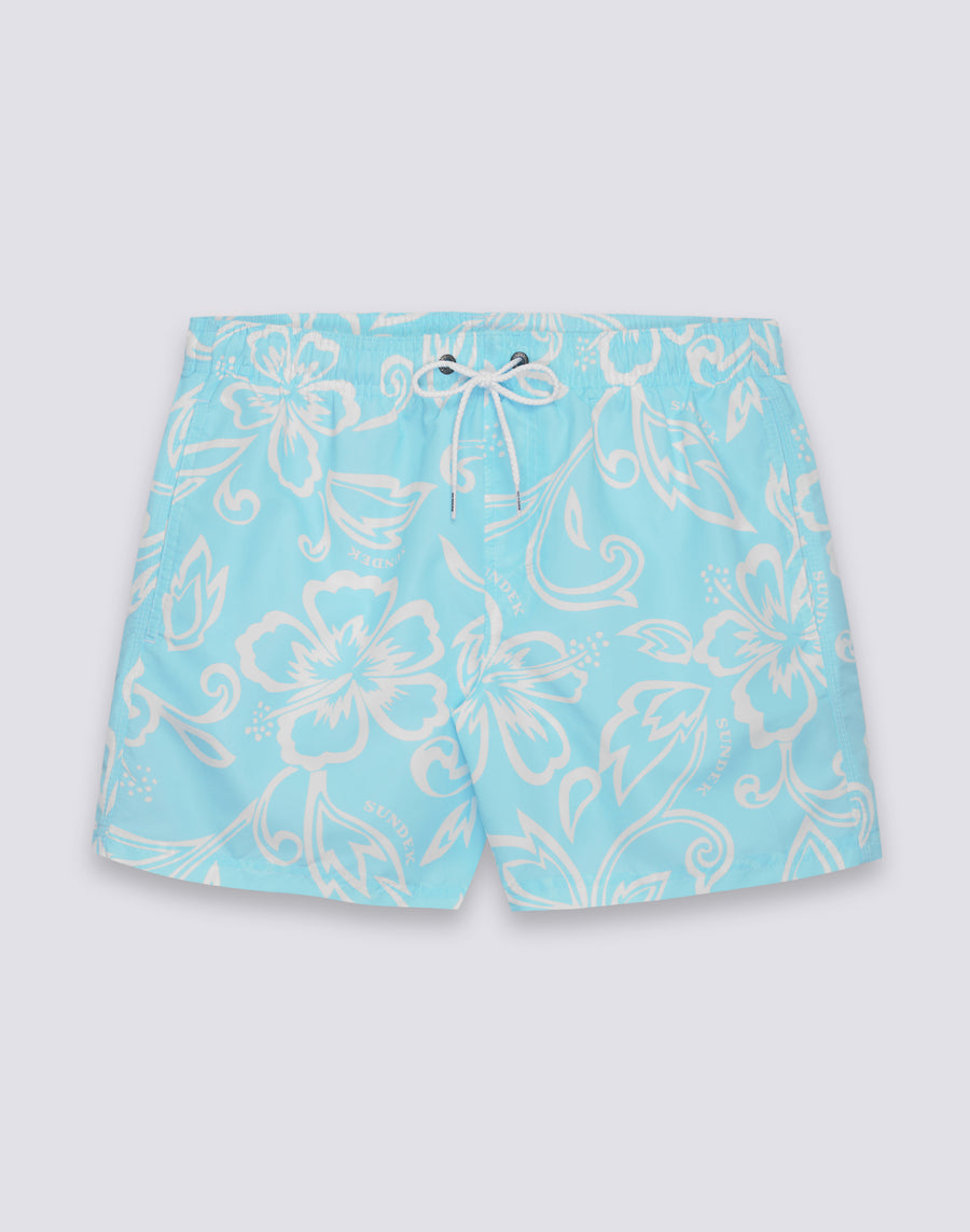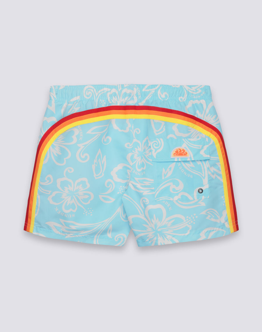 MAILLOT DE BAIN COURT POUR HOMME AVEC TAILLE ÉLASTIQUE ET IMPRIMÉ HIBISCUS D'ARCHIVES SK23