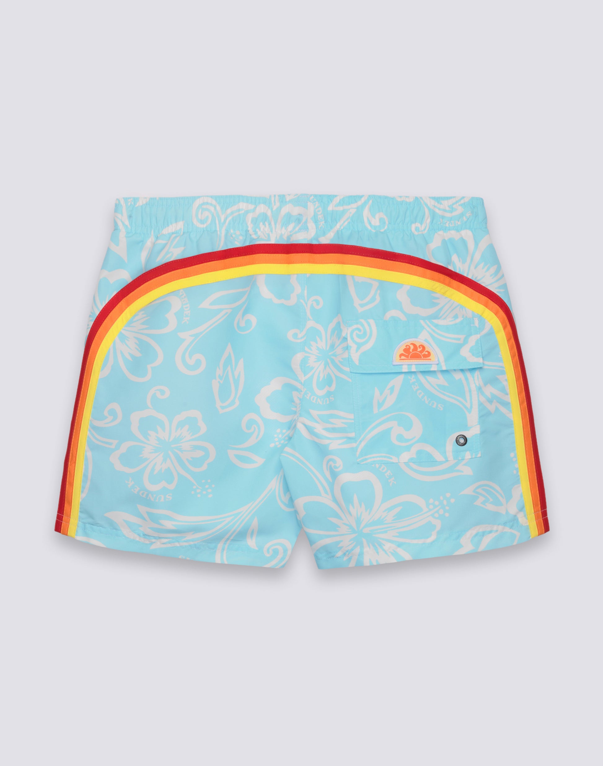 Le short de bain imprimé Hibiscus Archive célèbre l'héritage de Sundek avec un imprimé floral d'archive qui évoque des styles historiques. Ce boardshort vintage pour homme, à taille élastique, arbore l'emblématique imprimé Hibiscus et un arc-en-ciel de couleurs d'archive, pour un look rétro-contemporain mêlant nostalgie et style. L'imprimé rend hommage aux modèles Sundek historiques qui ont marqué l'histoire du beachwear. Ce motif floral vintage met en scène des hibiscus stylisés. Ce design illustre des décennies d'histoire de Sundek et célèbre l'esthétique tropicale de l'âge d'or du surf. Le détail arc-en-ciel au dos fait également référence à des couleurs d'archive, avec une palette vintage qui se distingue de l'arc-en-ciel classique. Cet élément distinctif complète le look patrimonial et confirme l'authenticité d'un style qui célèbre le passé tout en se tournant vers l'avenir.