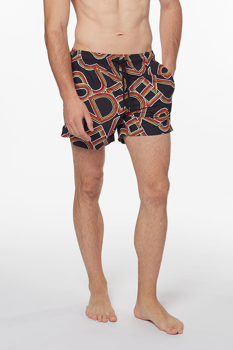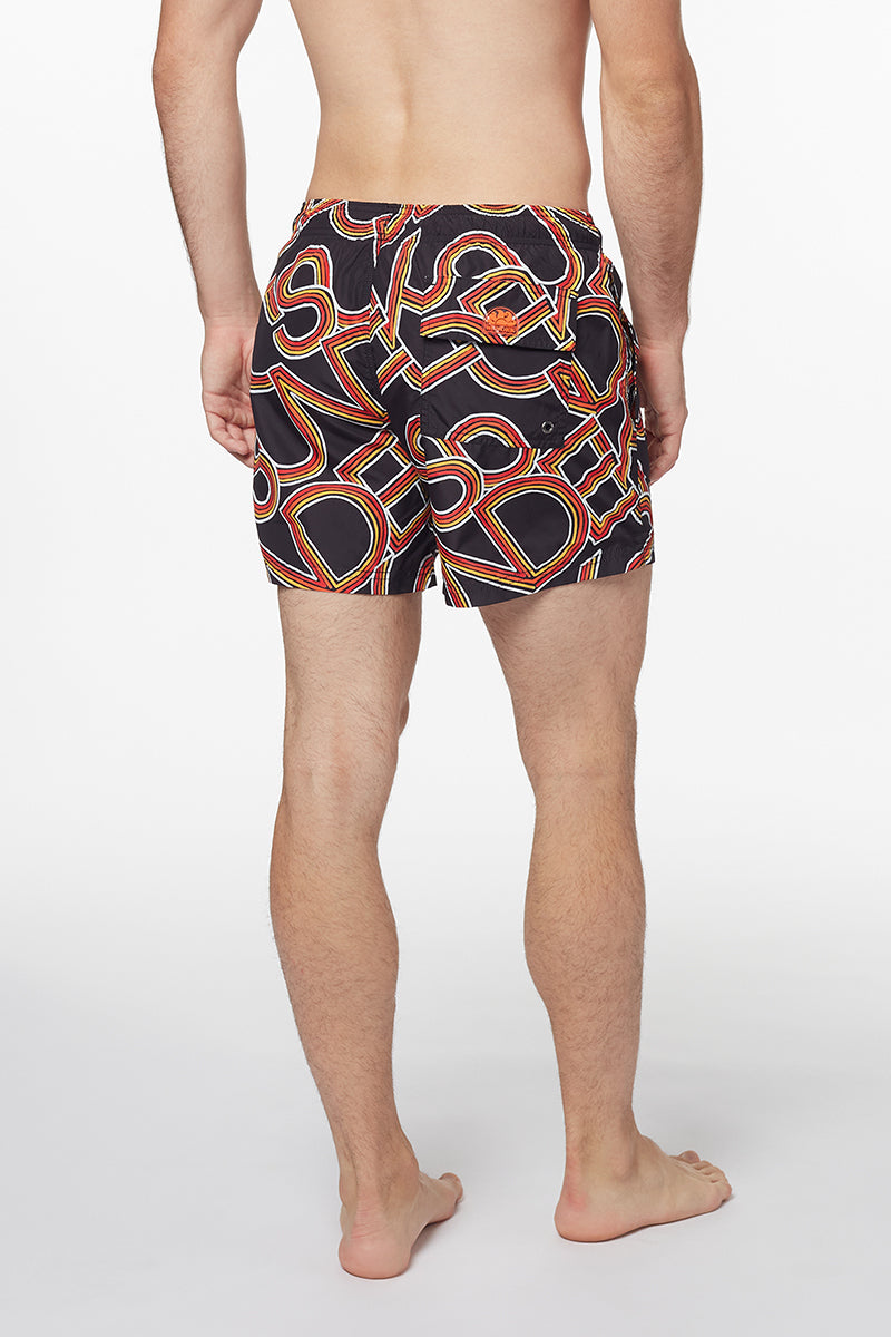 SHORT DE BAIN COURT À TAILLE ÉLASTIQUE IMPRIMÉ PAYOFF