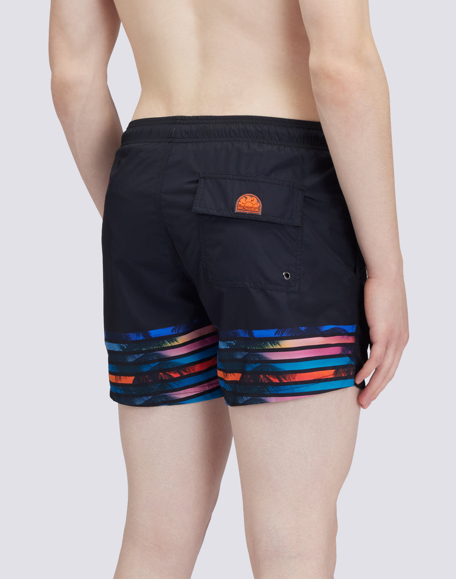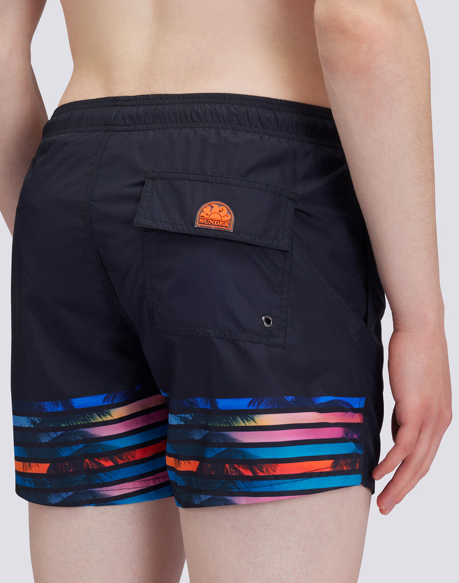 SHORT DE BAIN COURT À TAILLE ÉLASTIQUE AVEC IMPRIMÉ BIG PALM EN POLY RECYCLÉ