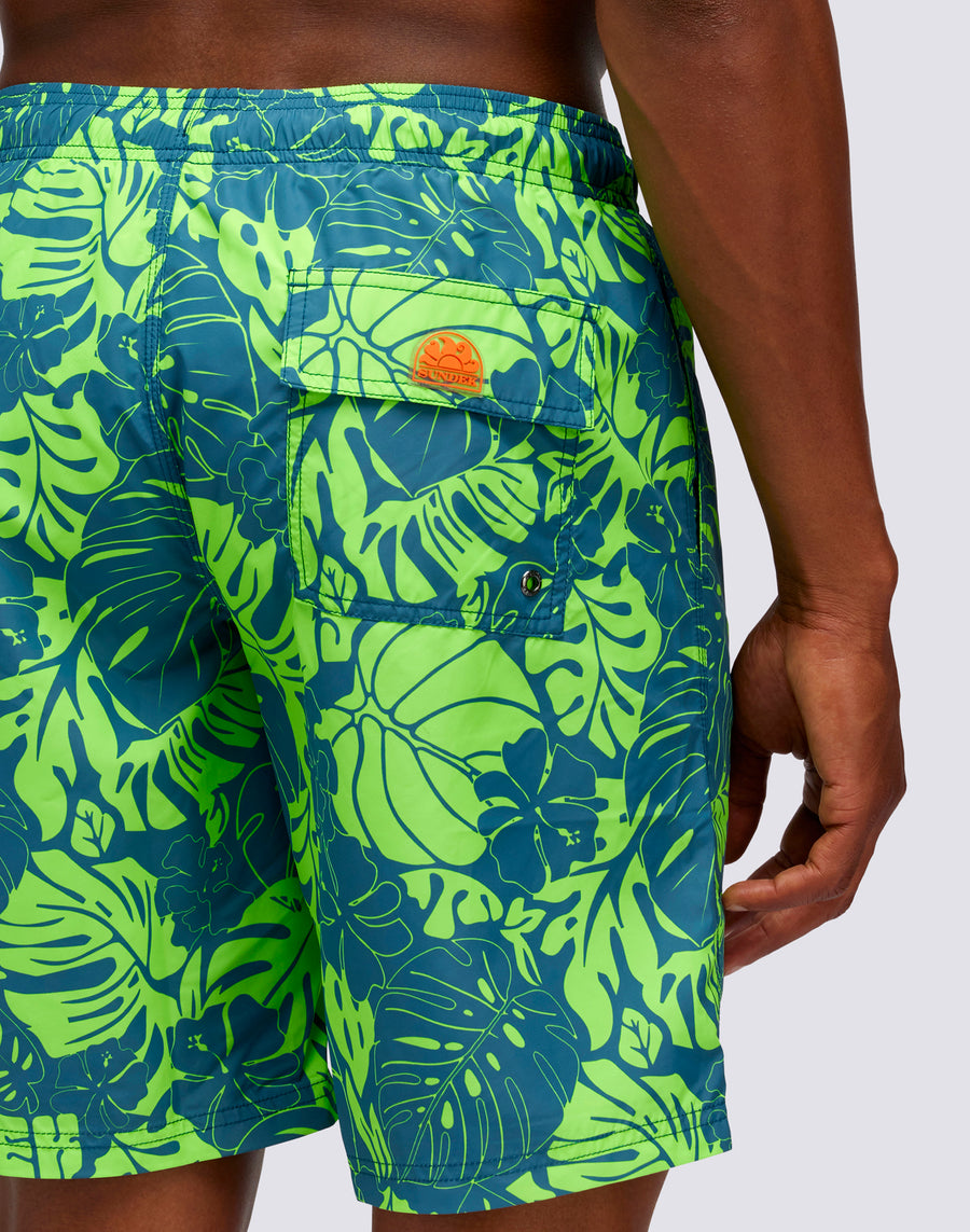 SHORT DE BAIN LONG À TAILLE ÉLASTIQUE IMPRIMÉ LEAF POWER