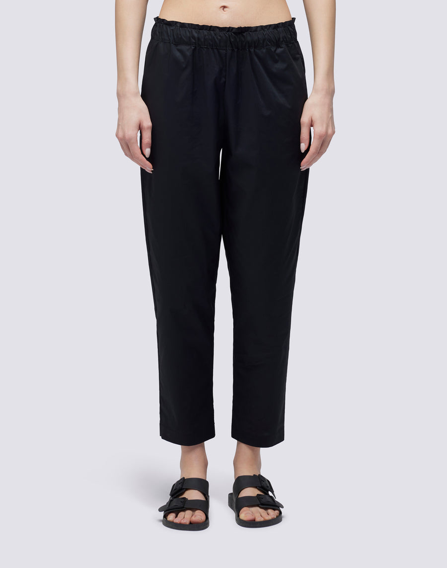 PANTALON EN POPELINE À TAILLE ÉLASTIQUE