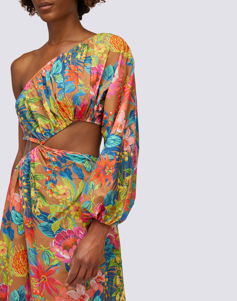 ROBE À UNE ÉPAULE AVEC COUPE SUR UN CÔTÉ ET IMPRIMÉ WILD GARDEN
