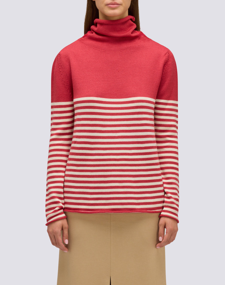 PULL COL MONTANT FEMME AVEC DÉTAIL RAYÉ