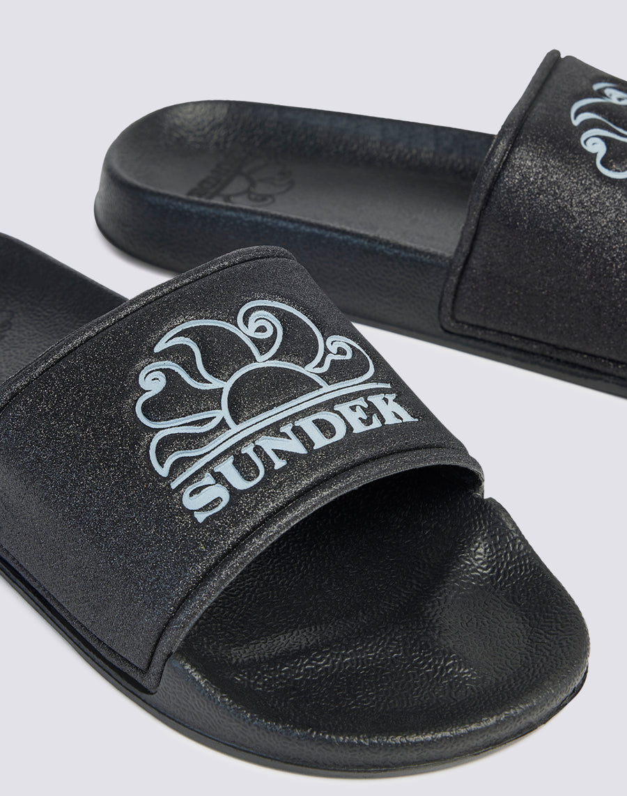 Ciabatte mare con fascia effetto glitter, per il mare, la piscina e per tutte le occasioni in cui non rinunci ad abbinare comfort e stile. Altezza suola 1 - 3 cm