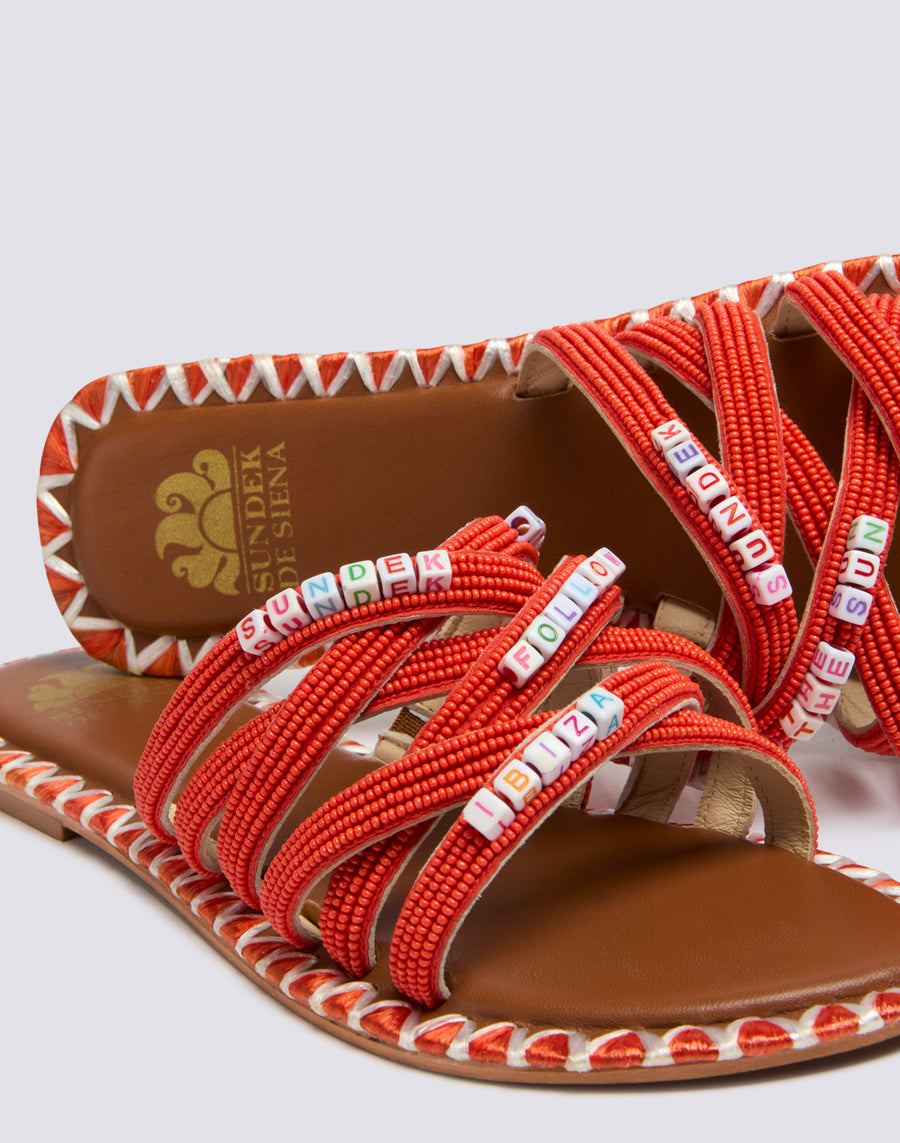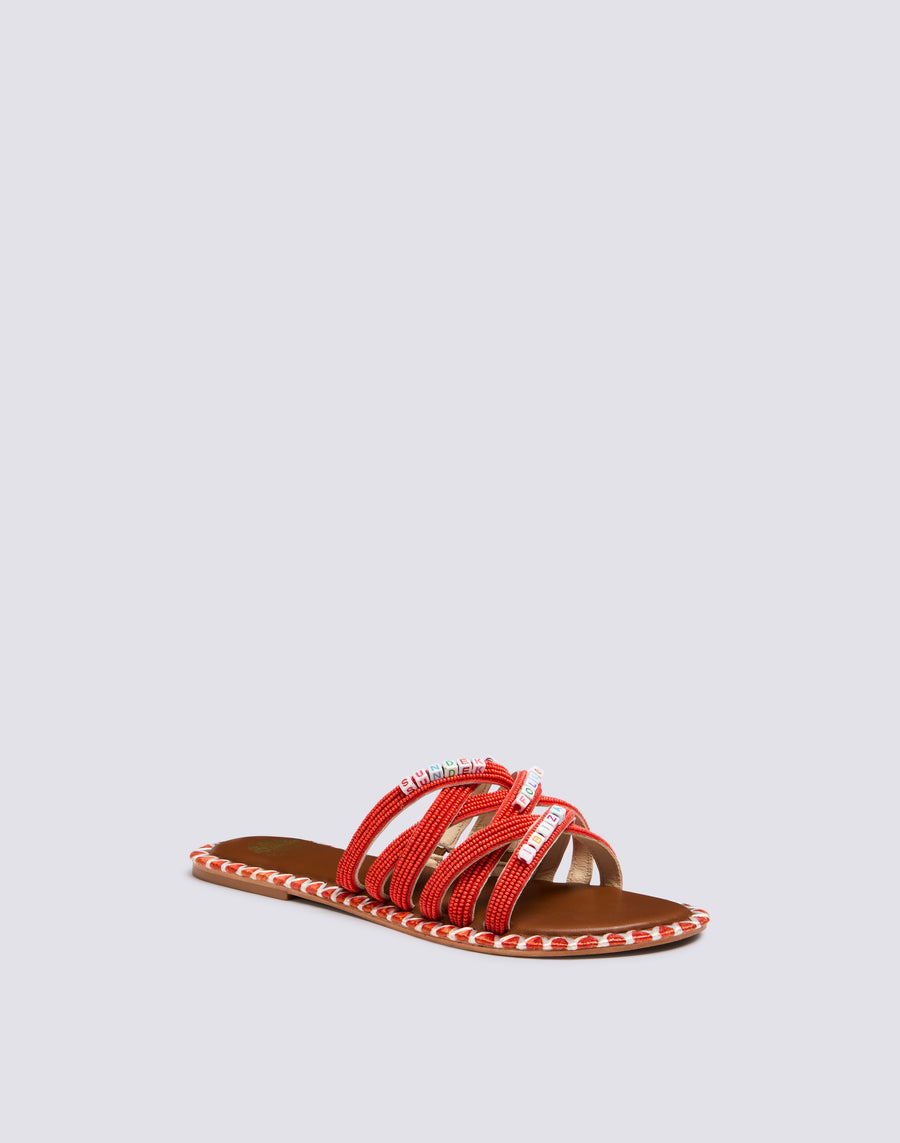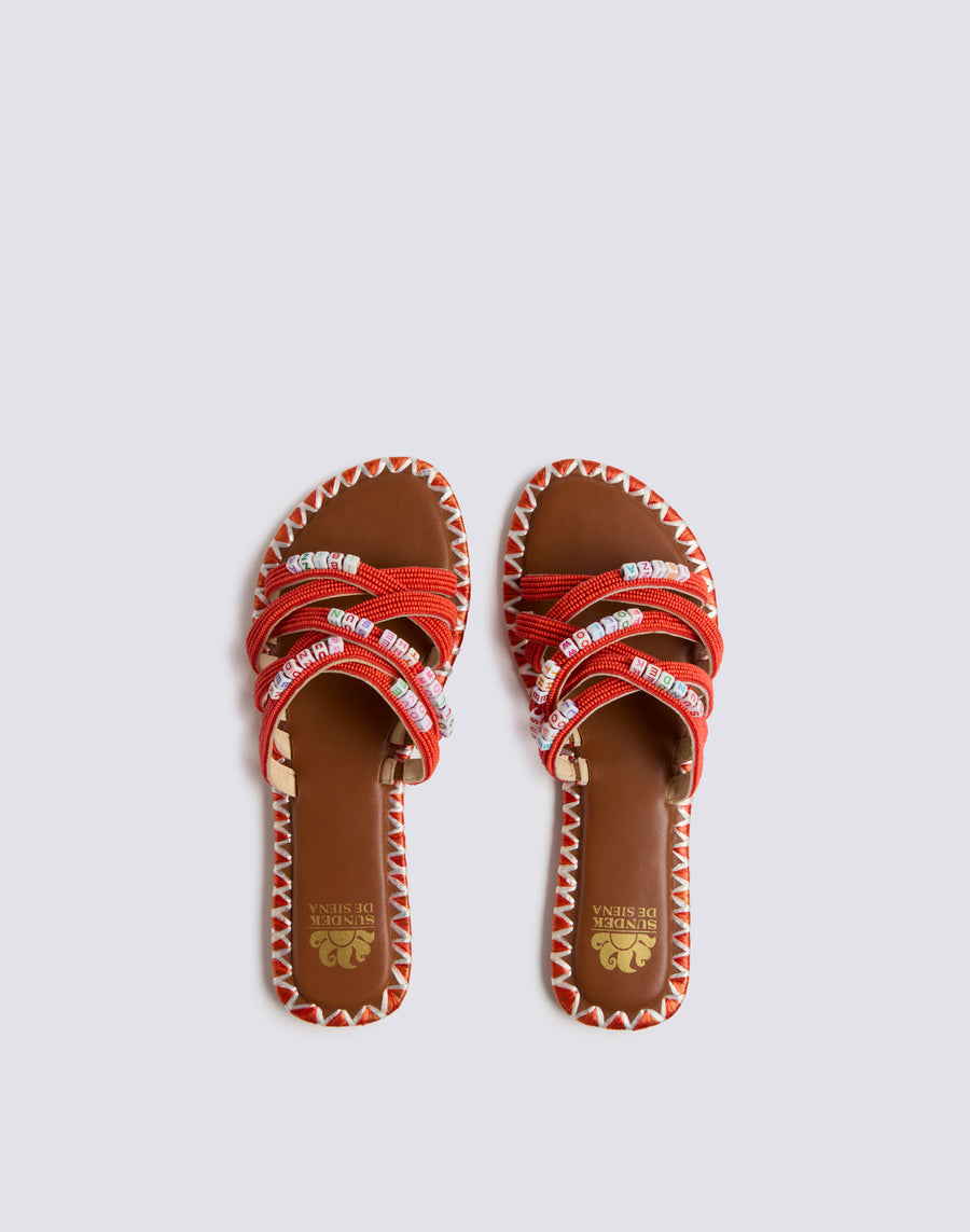 ESTERNO SUOLA 100% BUFFALO LEATHER INTERNO SUOLA 100% SHEEP LEATHER PERLINE DI VETRO 100% CUBETTI IN PLASTICA RAFFIA NATURALE 100%