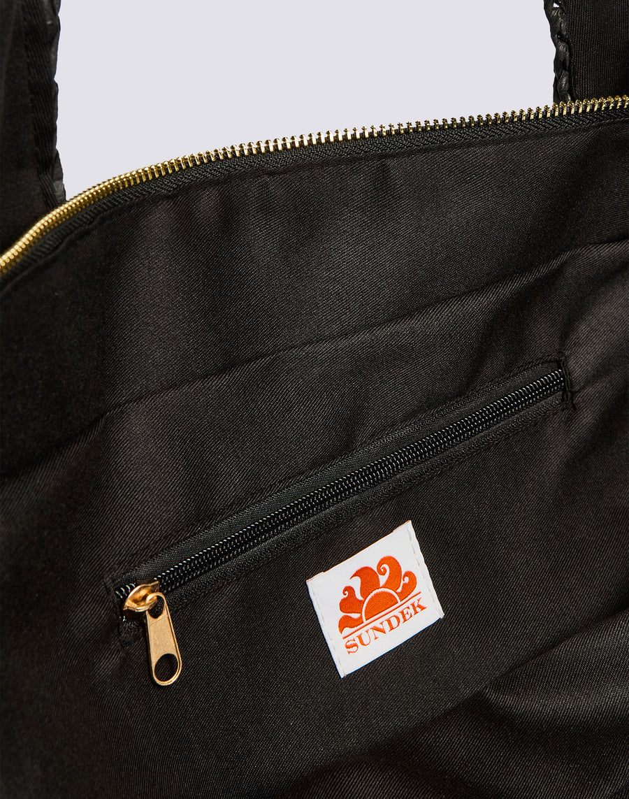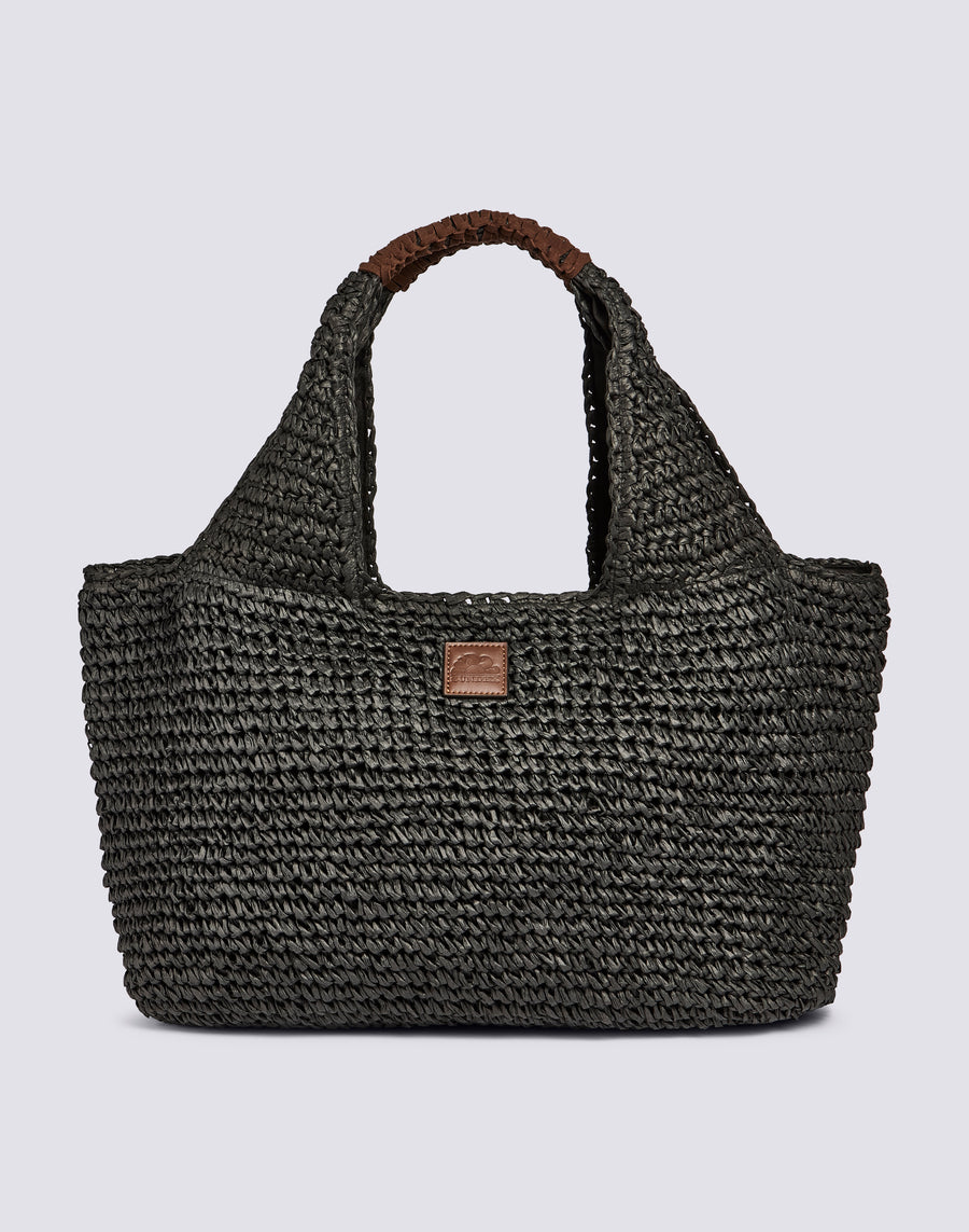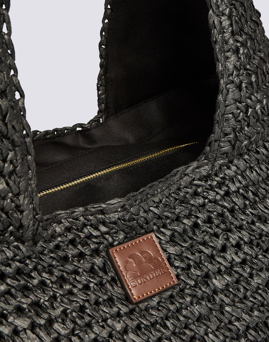 Maxi bag in paper straw intrecciata con chiusura centrale zip e manico. Capiente e originale nel design.