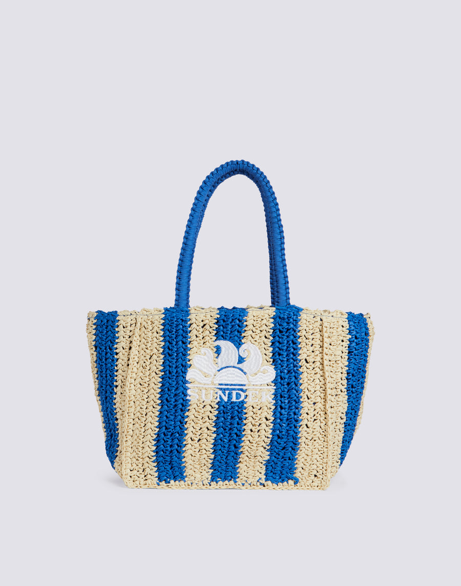 VITA - BORSA IN PAGLIA INTRECCIATA CON LOGO RICAMATO
