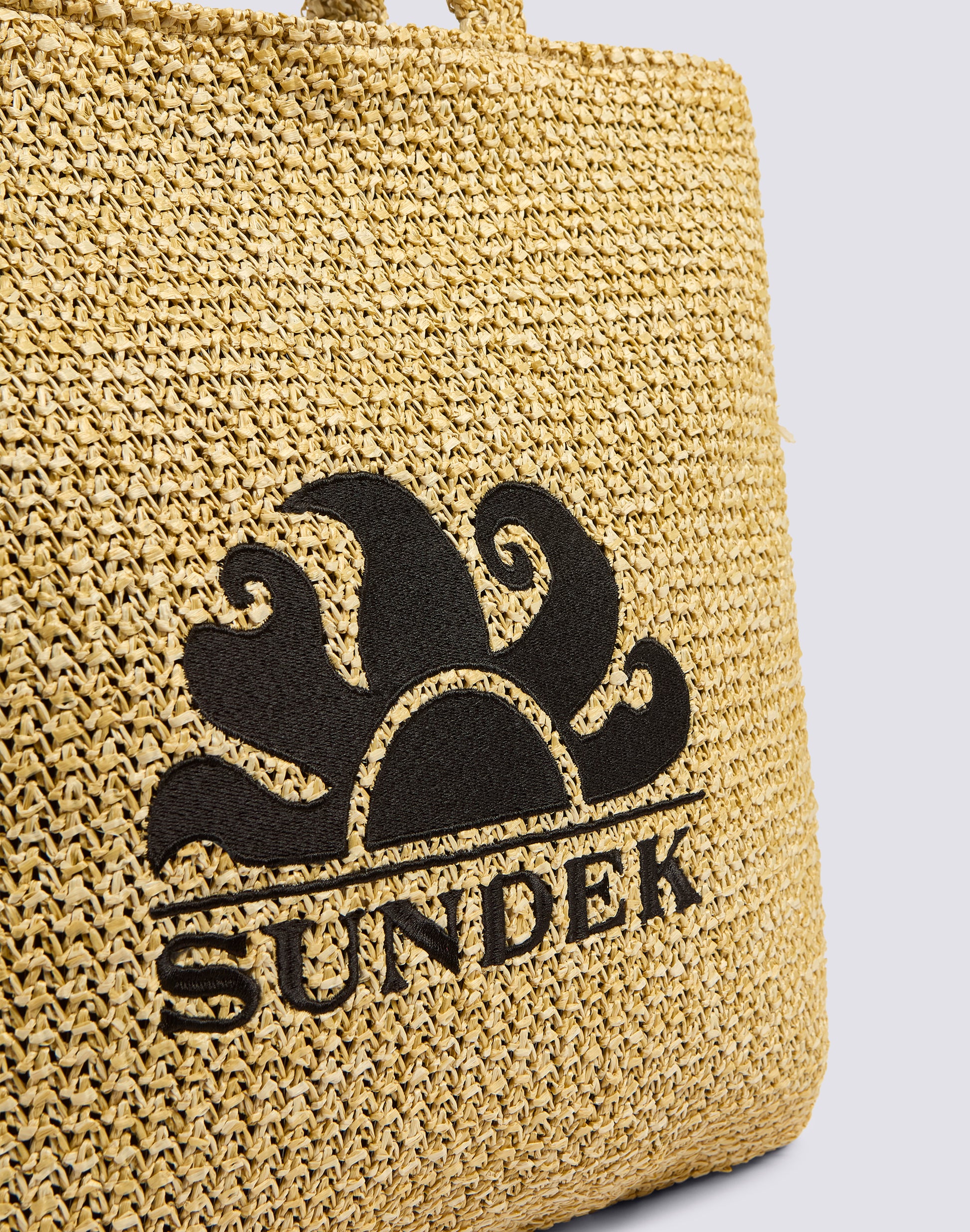 Borsa grande in Poly Raffia con logo ricamato. Modello intramontabile dei look estivi.