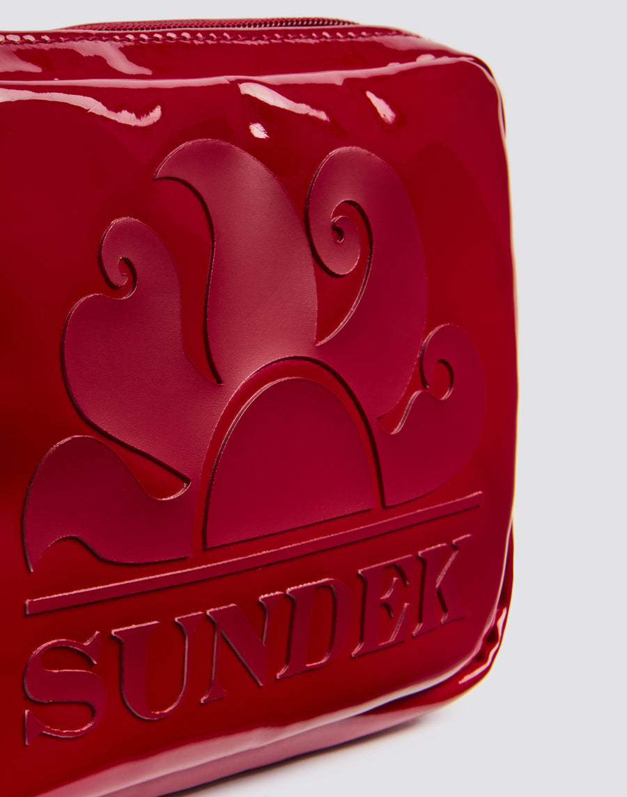 Boston pochette dalla texture shiny con zip e asola passamano.