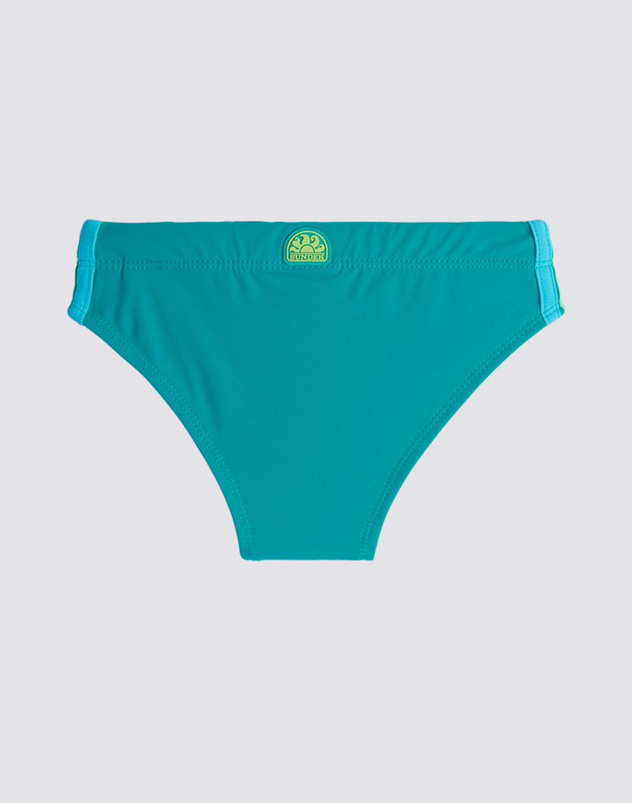 Immergiti nei colori dell'arcobaleno. Costume mare slip bambino in nylon Econyl rigenerato.
