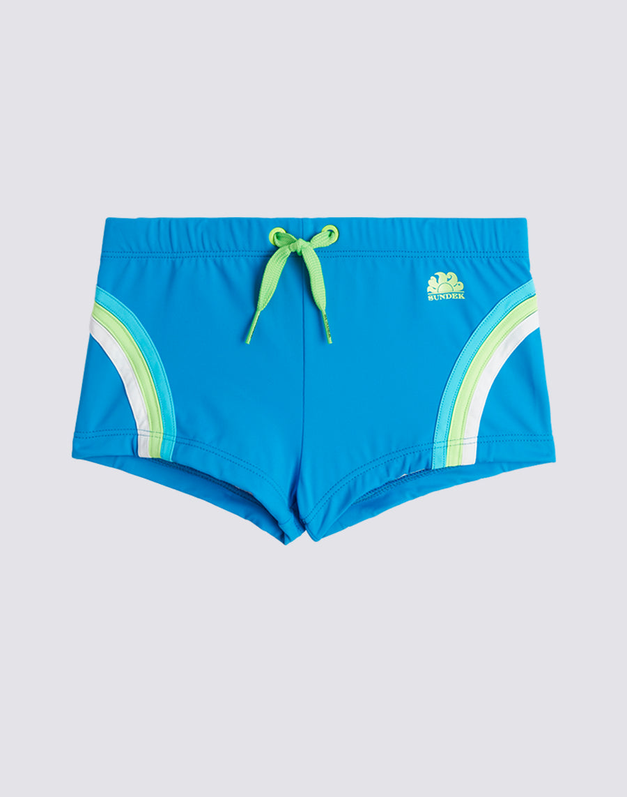 Il boxer mare da bambino che punta tutto sul colore e non dimentica l'ambiente, perché è realizzato in nylon rigenerato ECONYL®. Comodo grazie all’elastico in vita e al laccio regolabile, è il costume che il tuo bimbo potrà indossare con facilità per giocare e fare il bagno.