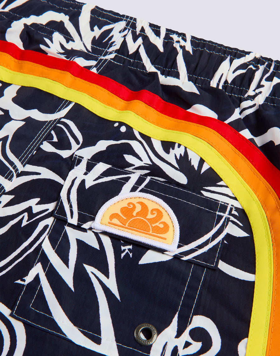 COSTUME DA BAGNO CORTO BAMBINO CON VITA ELASTICATA STAMPA ARCHIVE HIBISCUS SK23