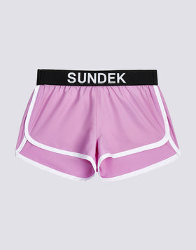 Uno shorts leggero con logo Sundek perfetto da indossare sopra il costume. Facili da infilare, dal tessuto leggero e confortevole, accompagneranno la tua bimba dalla spiaggia ai giochi estivi. Vestibilità regular. Lunghezza 16 cm (taglia 6) misurati sul lato esterno.