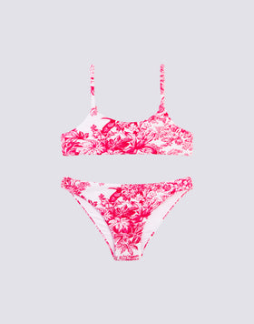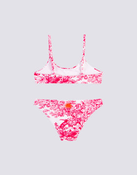 Romantico bikini da bambina con fantasia Toile de Jouy, composto da top e slip. Da indossare in coordinato con il modello della mamma.