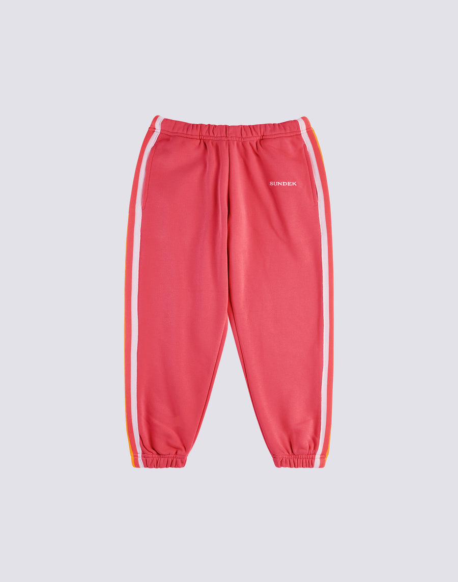 Pantaloni tuta da bambina con coulisse elasticizzata e dettaglio arcobaleno ai lati. Vestibilità regular, da abbinare alla felpa in coordinato, venduta separatamente.