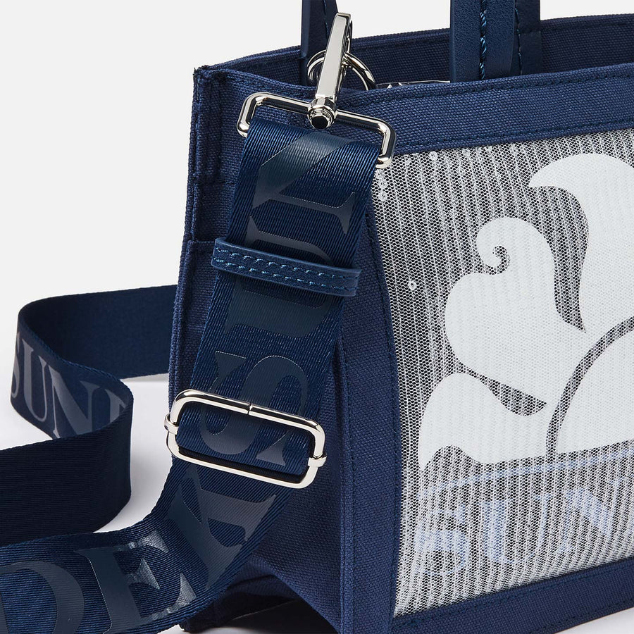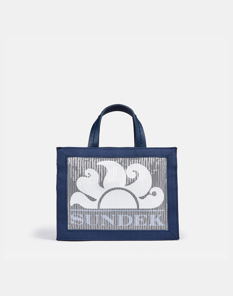 Borsa piccola in mesh con dettagli in paillettes con logo Sundek stampato. Questa borsa è perfetta per la spiaggia grazie alla sua rete a trame sottili che impediscono il passaggio della sabbia.
