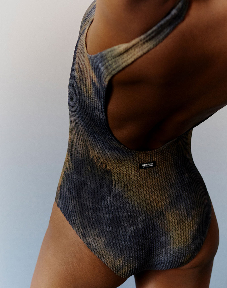 Distinguiti e rendi unico il tuo look con questo costume intero in tye-dye. La lycra jacquard con cui è realizzato dona un'inconfondibile morbidezza, la vestibilità sporty assicura massimo comfort.