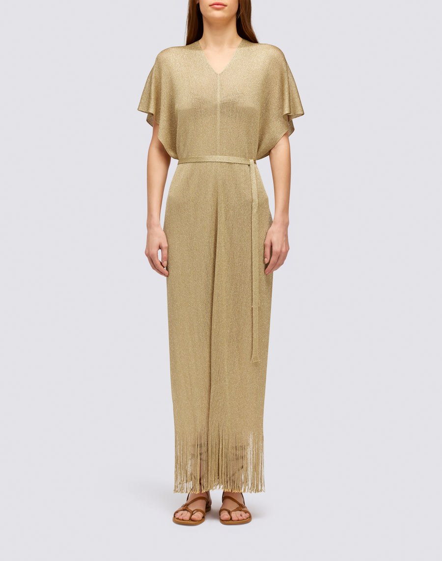 Crea il tuo look estivo con il nostro kaftano lungo con scollo a V. La cintura inclusa e lo spacco laterale conferiscono eleganza e stile, mentre le frange aggiungono un tocco di originalità.