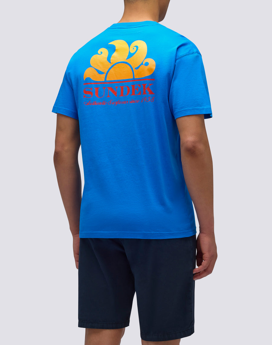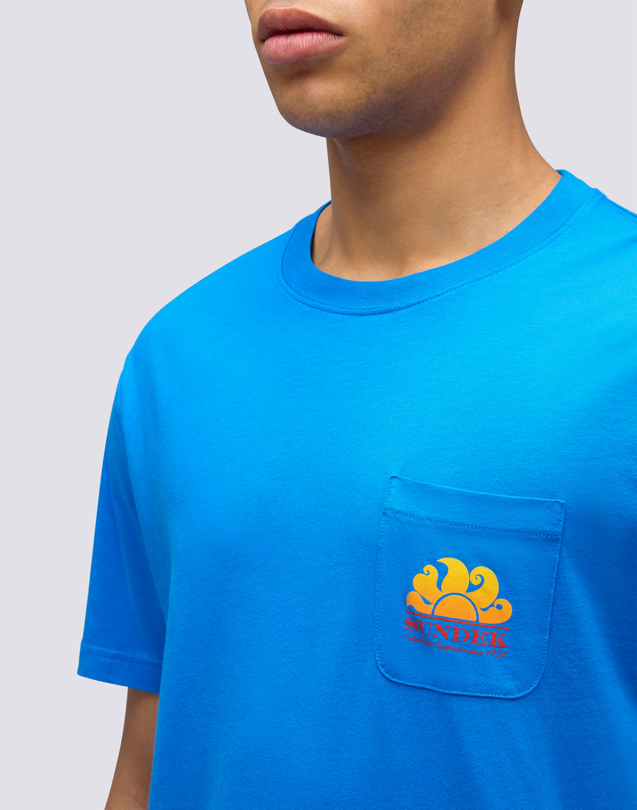 Porta l'estate sempre con te con questa t-shirt con il logo Sundek sfumato stampato sulla tasca e sul retro: perfetta in ogni momento della giornata, ti accompagnerà in vacanza, in viaggio e nel quotidiano.