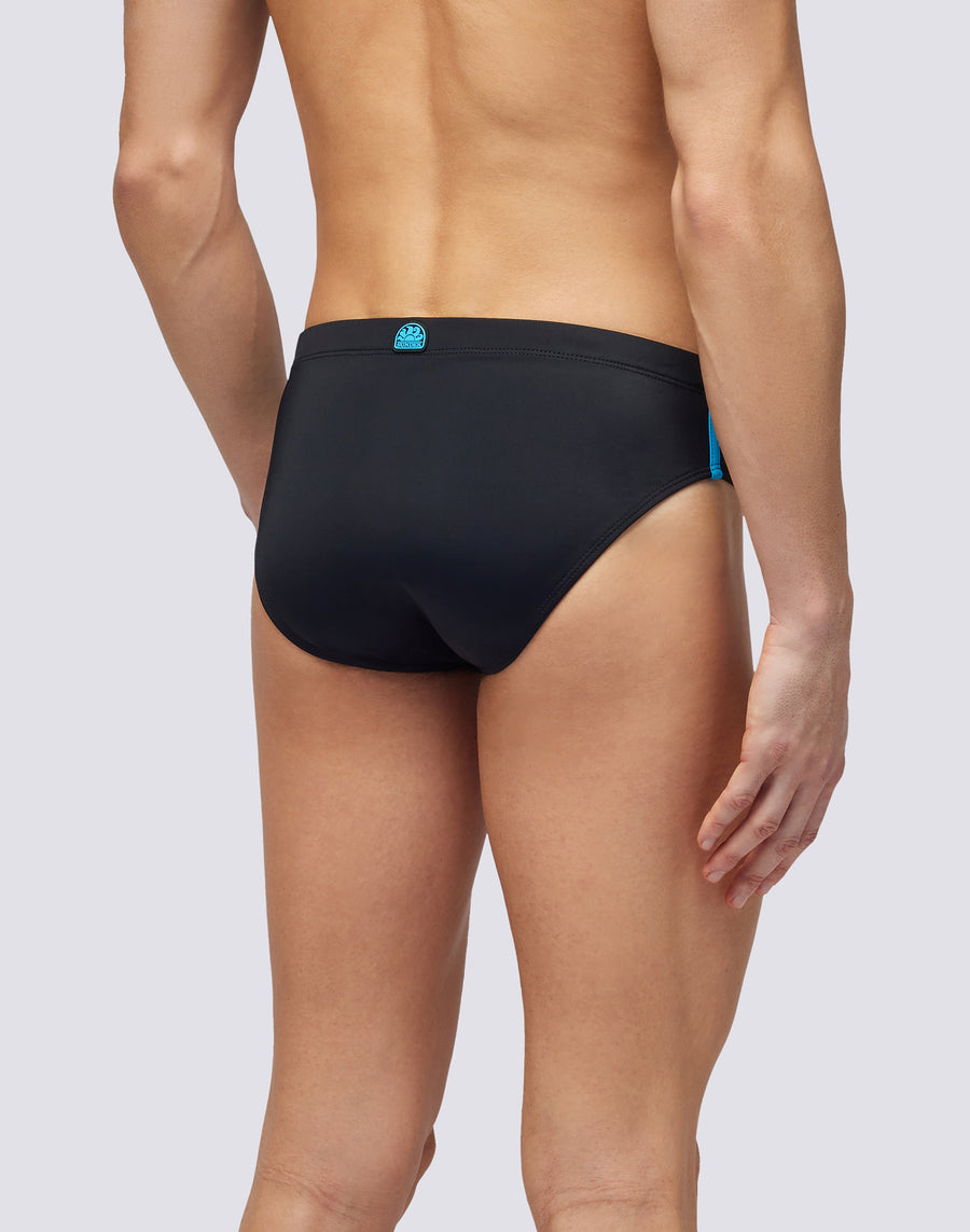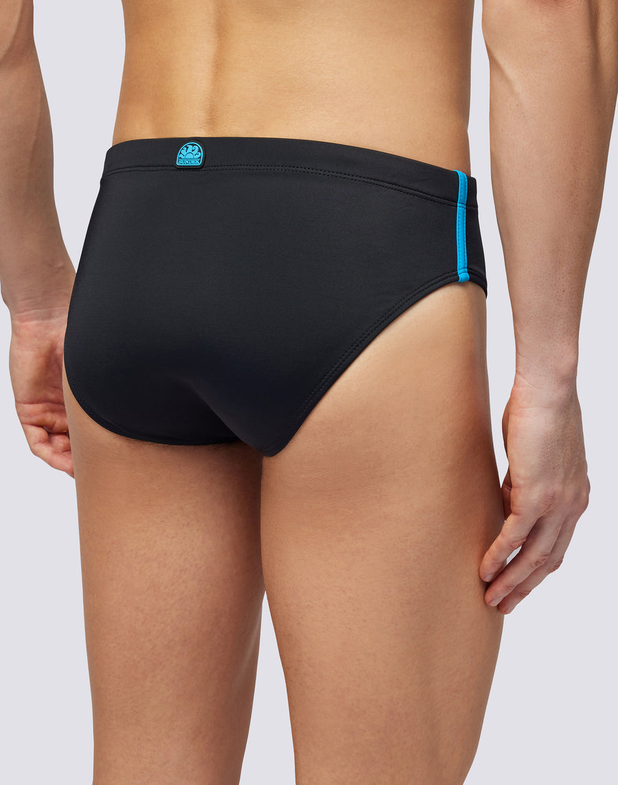 Slip uomo mare tinta unita con banda laterale, vita regolabile e coulisse con laccetto. Costume slip mare in tinta unita e banda laterale monocolore a contrasto, realizzato in ECONYL® Made in Italy, tessuto rigenerato ecosostenibile, resistente e che protegge dai raggi UV. Perfetto da indossare per nuotare e per prendere il sole e curare l'abbronzatura.