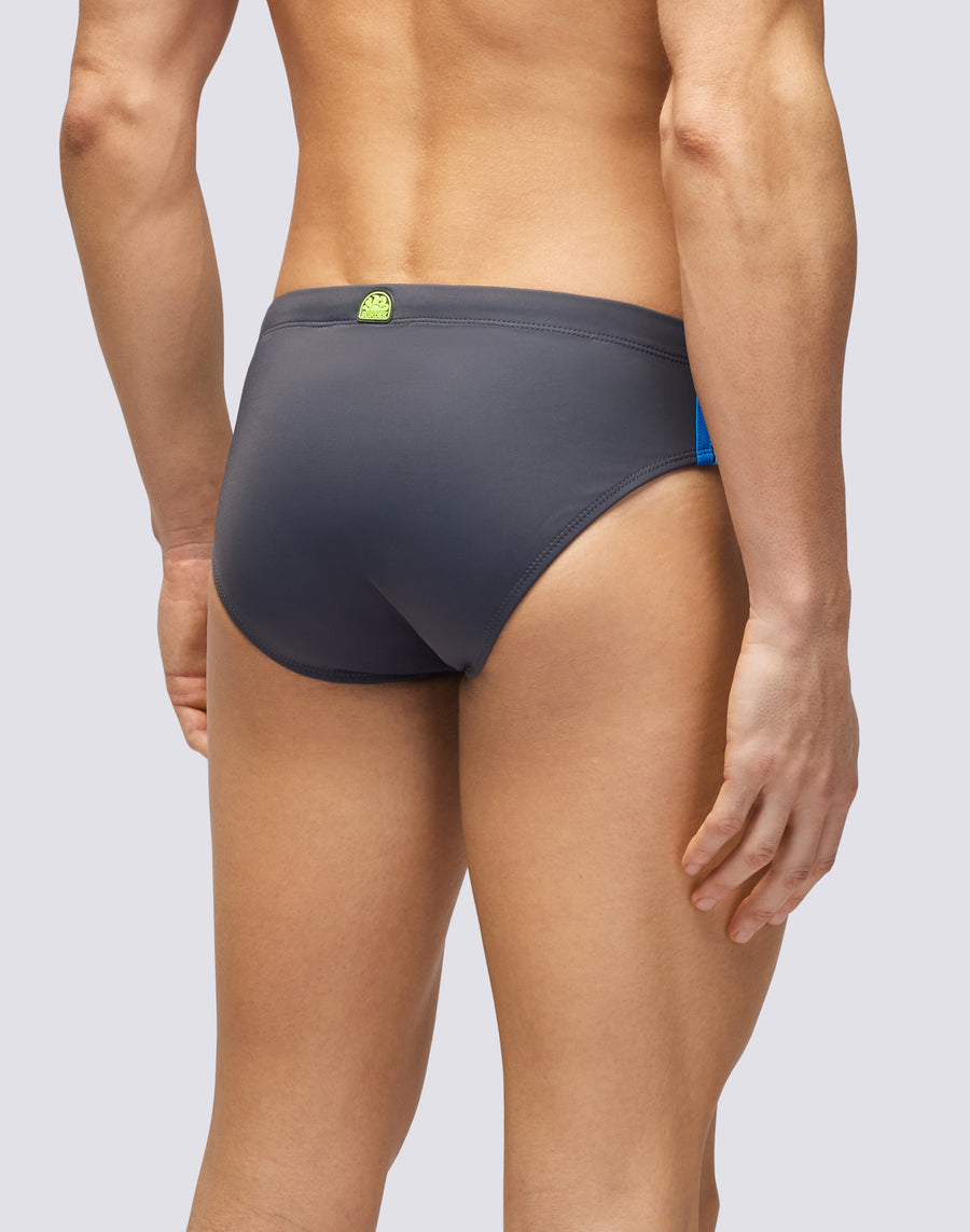 Costume slip uomo tinta unita e vita regolabile. Lo slip da mare monocromo con laccio coulisse e tre bande laterali colorate a contrasto per un look deciso e funzionale. Si asciuga velocemente e ti dà comfort e resistenza in acqua e fuori dall'acqua: indossalo per nuotare e allenarti e quando ti riposi e prendi il sole.