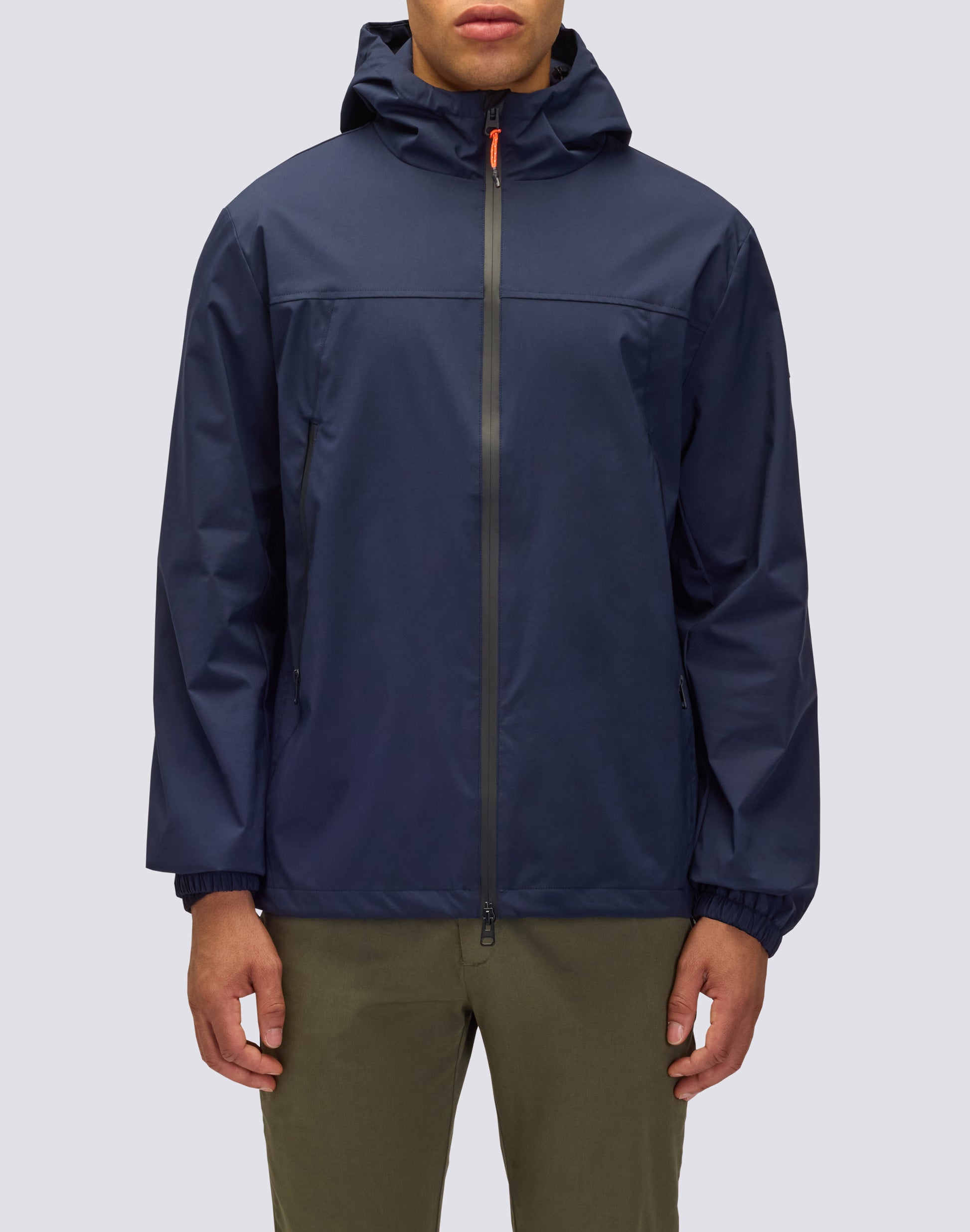 Giubbotto corto da uomo in tessuto accoppiato a 3 strati. Lo strato esterno in cotone/nylon si combina a una membrana isolante e a uno strato interno in poliestere. Esternamente il tessuto è trattato con rifinitura water resistant. La membrana interna invece è utile per ridurre la penetrazione del vento. Il capo è inoltre foderato internamente in mesh, mentre le maniche sono foderate in nylon light. Vestibilità regular. Grado di calore medio. In presenza di temperature rigide è consigliabile indossare una giacca imbottita come ulteriore strato.
