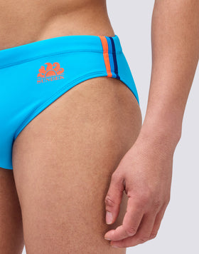 Costume slip uomo tinta unita e vita regolabile. Lo slip da mare monocromo con laccio coulisse e tre bande laterali colorate a contrasto per un look deciso e funzionale. Si asciuga velocemente e ti dà comfort e resistenza in acqua e fuori dall'acqua: indossalo per nuotare e allenarti e quando ti riposi e prendi il sole.