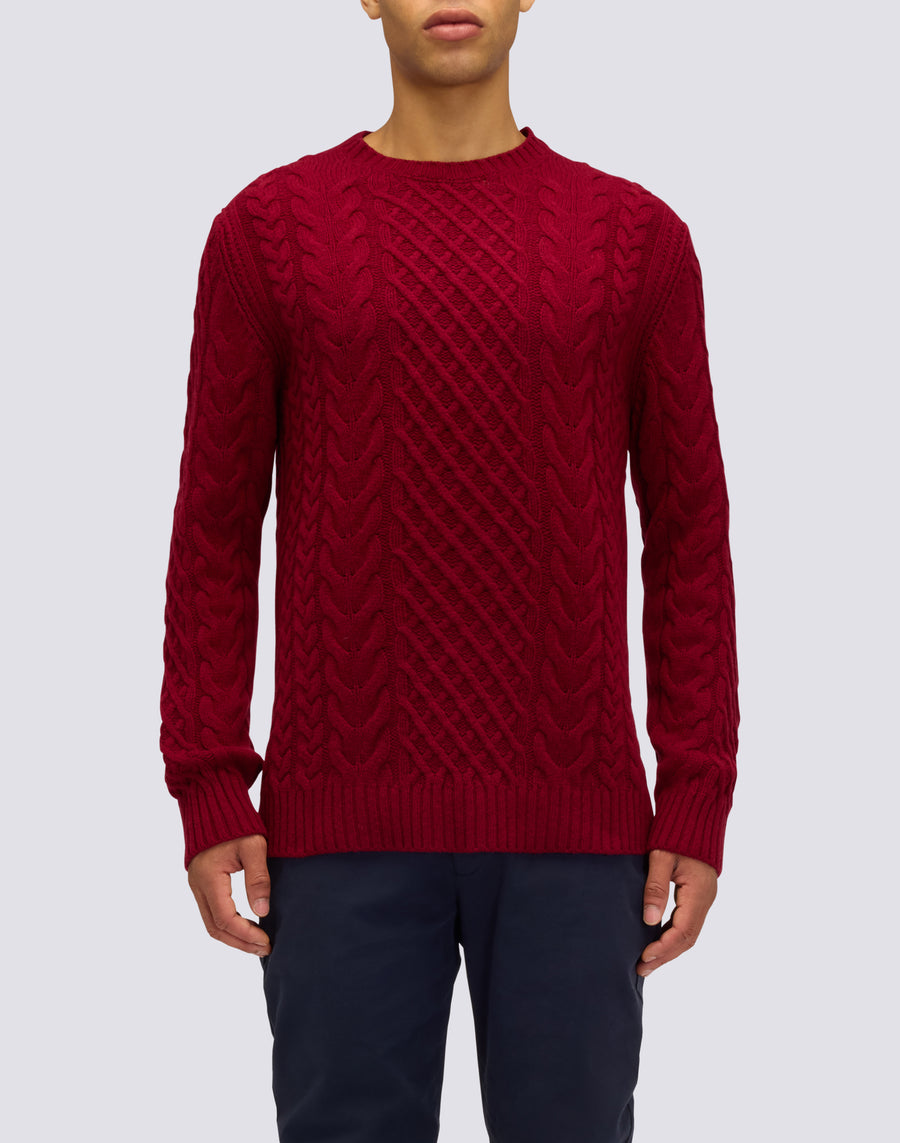 MAGLIONE UOMO GIROCOLLO CON TRECCE IN LANA MERINO E CACHEMIRE