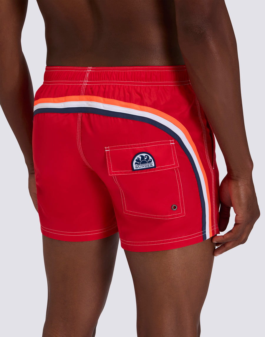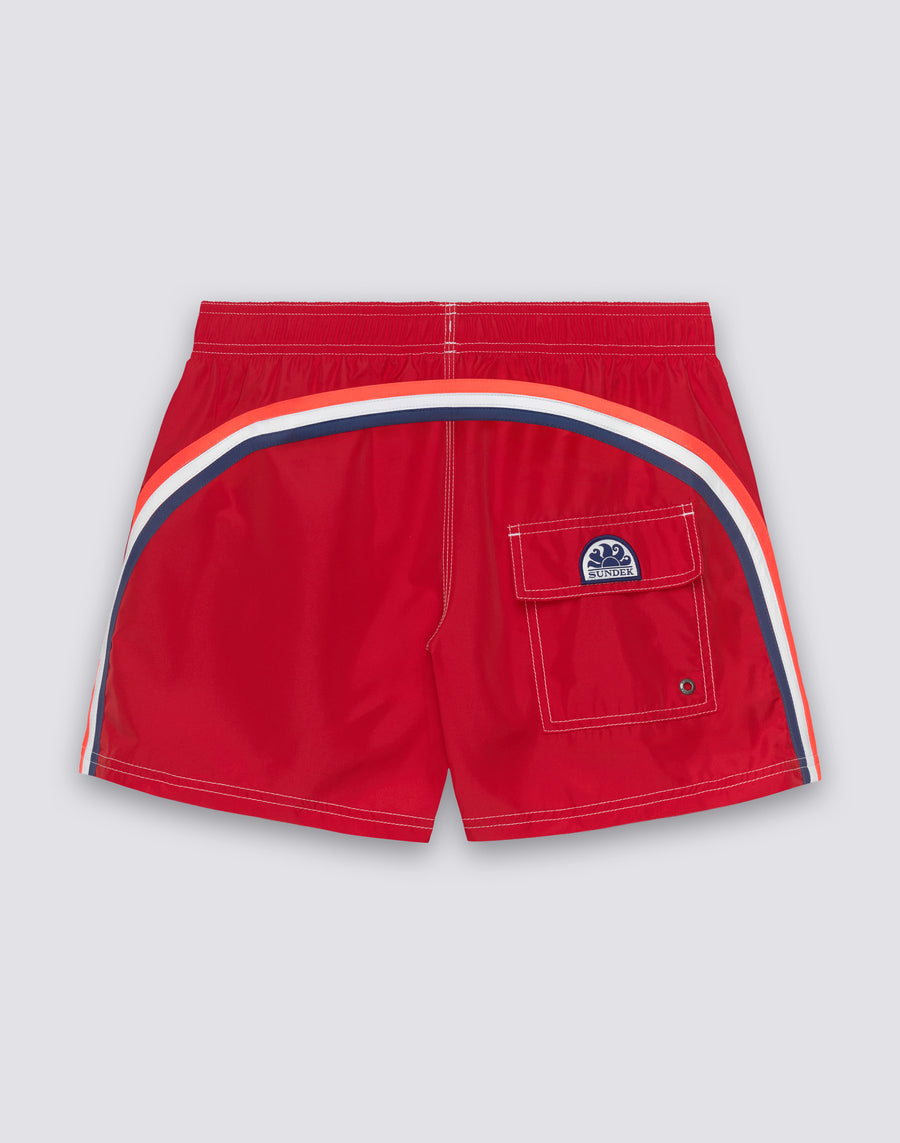 L'inconfondibile arcobaleno a tre colori Sundek sul retro