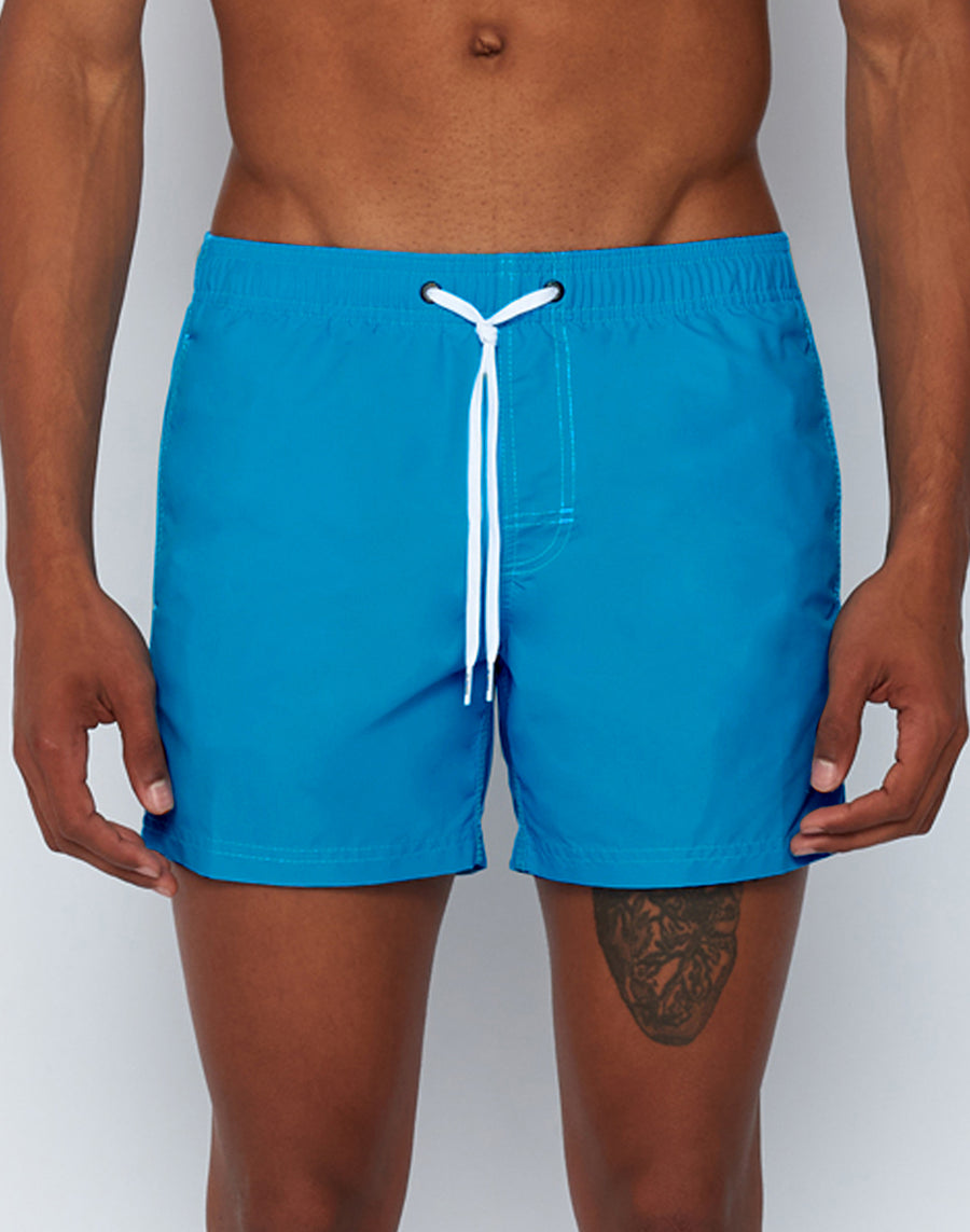 Shorts uomo mare corto e con vita elasticata, coulisse e iconico arcobaleno Sundek sul retro. Questo costume è realizzato con cuciture a tre aghi e al 100% con il nostro tessuto storico, il nylon-taffetà: liscio come la seta, leggero e resistente a tutto, si asciuga velocissimo per darti comodità ovunque, tra le onde e fuori dall'acqua. Lunghezza 35 cm (taglia M), misurati sul lato esterno della gamba.
