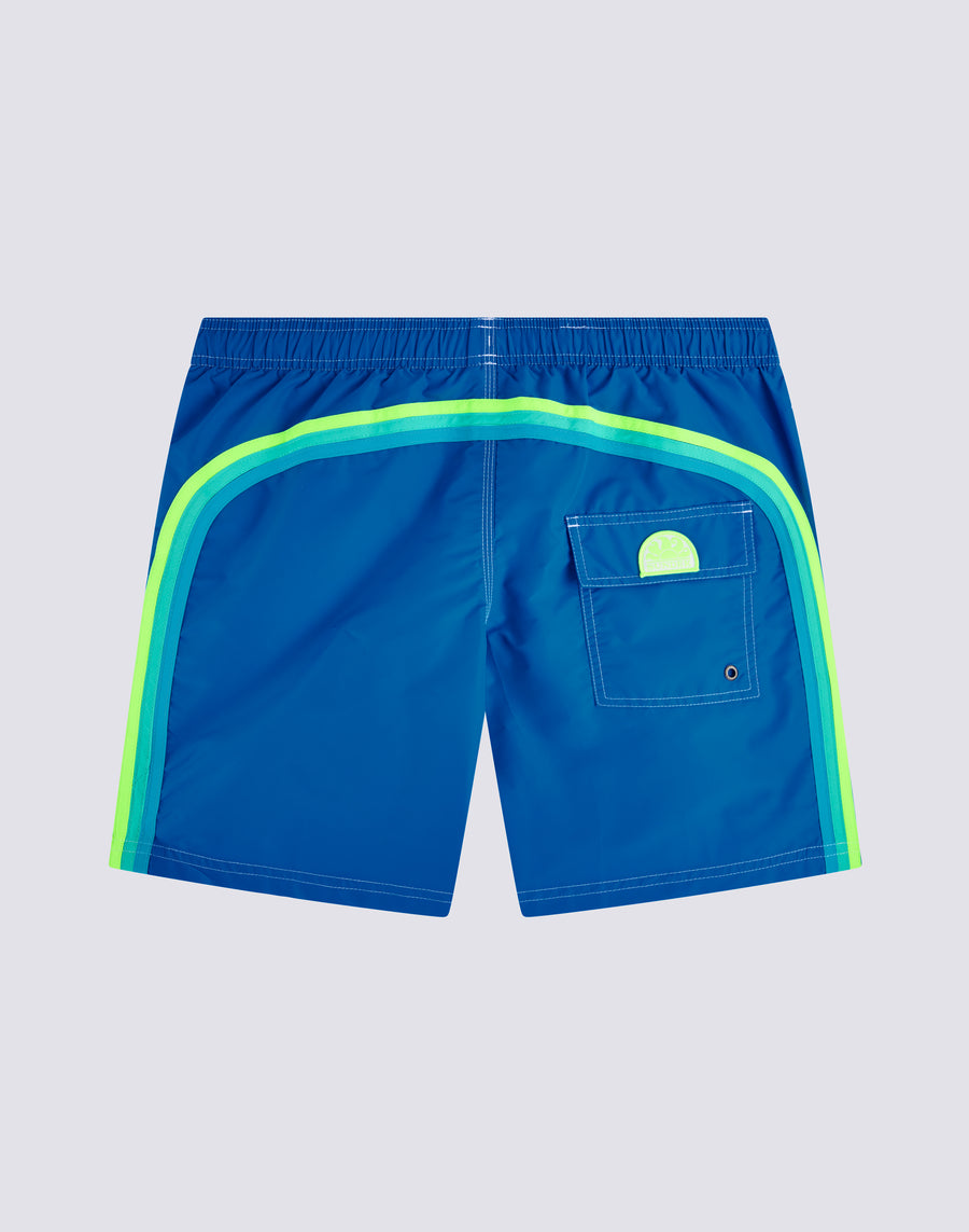 Tutto lo stile senza tempo Sundek in questo boardshort di lunghezza media e con vita elasticata. Elegante, confortevole, destinato a durare vacanza dopo vacanza: è il nostro boardshort classico con coulisse in vita e arcobaleno a contrasto sul retro, realizzato nel nostro storico tessuto nylon taffetà leggero e che si asciuga rapidamente, resistente, con cuciture a tre aghi per un rinforzo ulteriore. Lunghezza 41 cm (taglia M), misurati sul lato esterno della gamba.