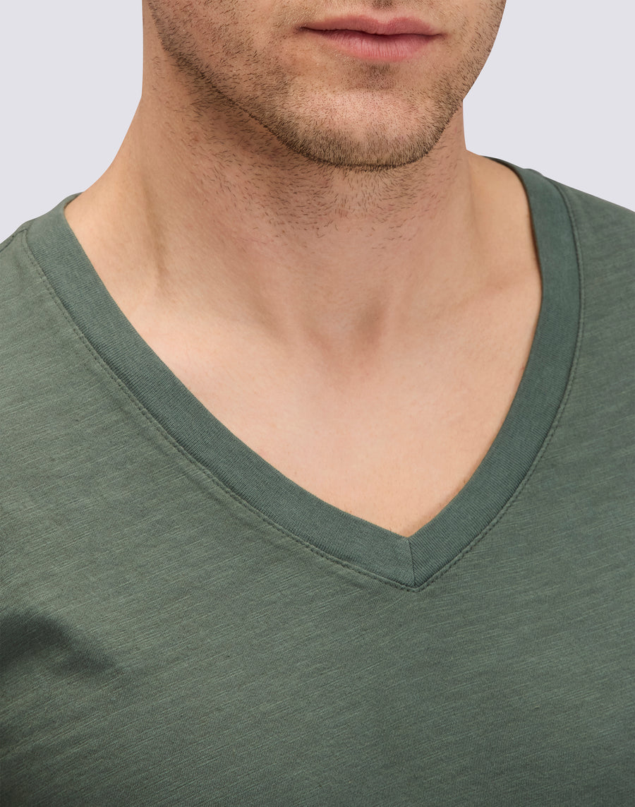 T-shirt a mezze maniche da uomo in tinto capo con scollo a V. Vestibilità regular per un comfort ottimale.
