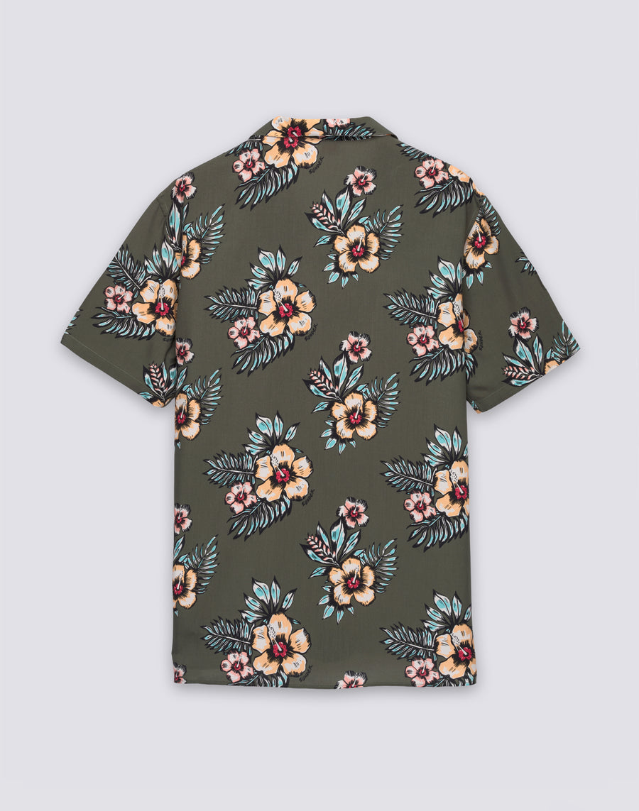 Camicia da uomo modello bowling stampata a maniche corte, in viscosa popeline. Vestibilità relaxed.