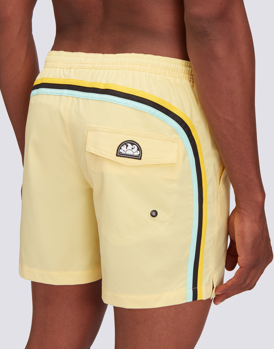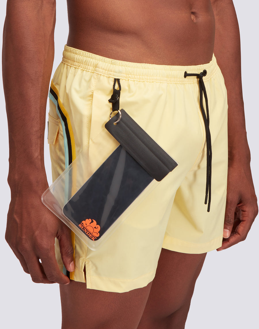 86%PL 14%EA – 4 WAY STRETCH Tessuto in poliestere elasticizzato, leggero e confortevole. Offre massima libertà di movimento, è idrorepellente e si asciuga rapidamente. Perfetto sia per la spiaggia che per le attività sportive.