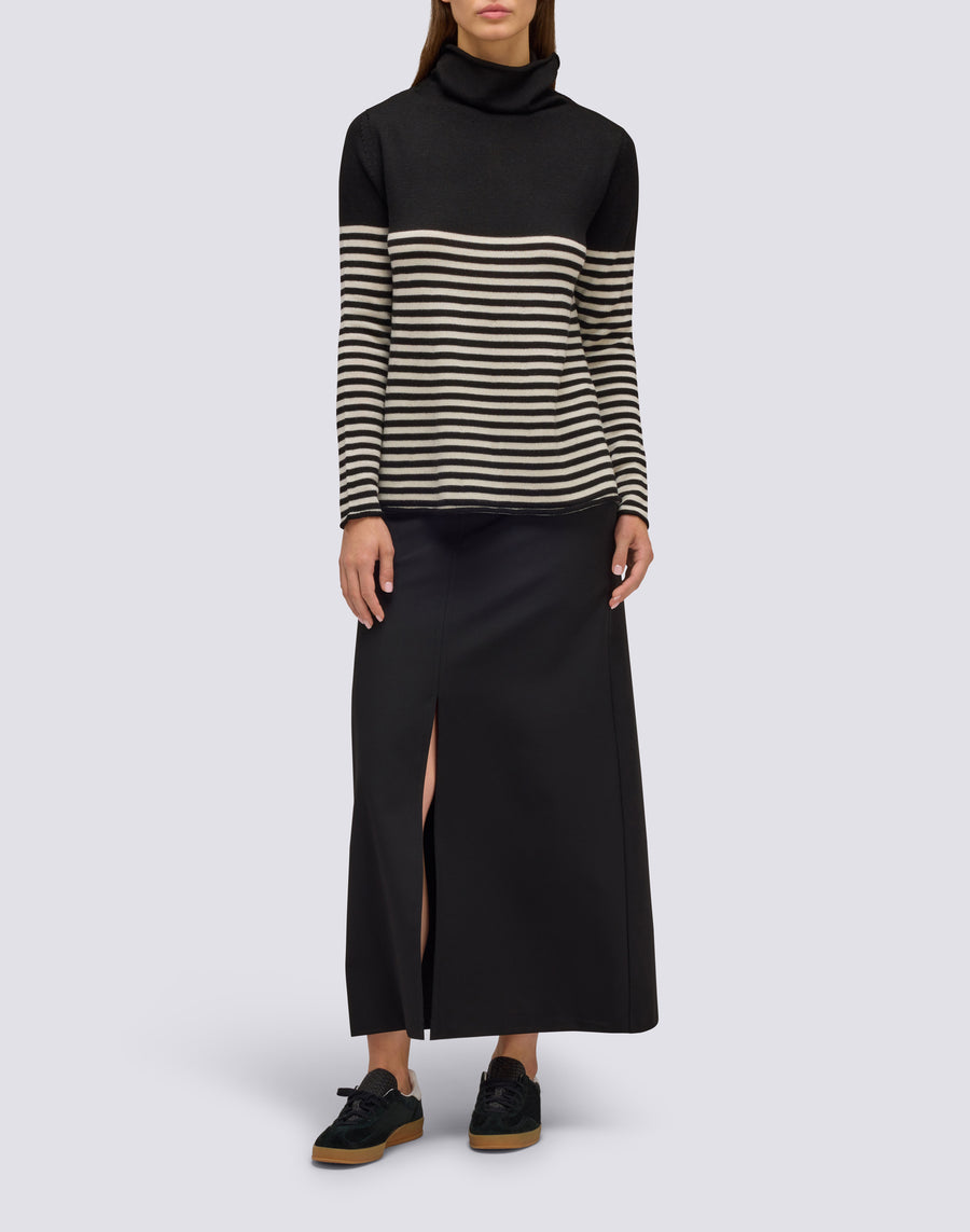 Questa gonna lunga in twill di poliestere e viscosa unisce stile e comfort con una vita semi elastica che garantisce una vestibilità perfetta. Il design con spacco frontale aggiunge un tocco di eleganza e femminilità, ideale per valorizzare ogni look con movimento e raffinatezza.