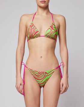 Questi slip sono dotati di una stampa zebrata, lacci regolabili e sono in coordinato mamma-figlia per un look da spiaggia perfetto.
