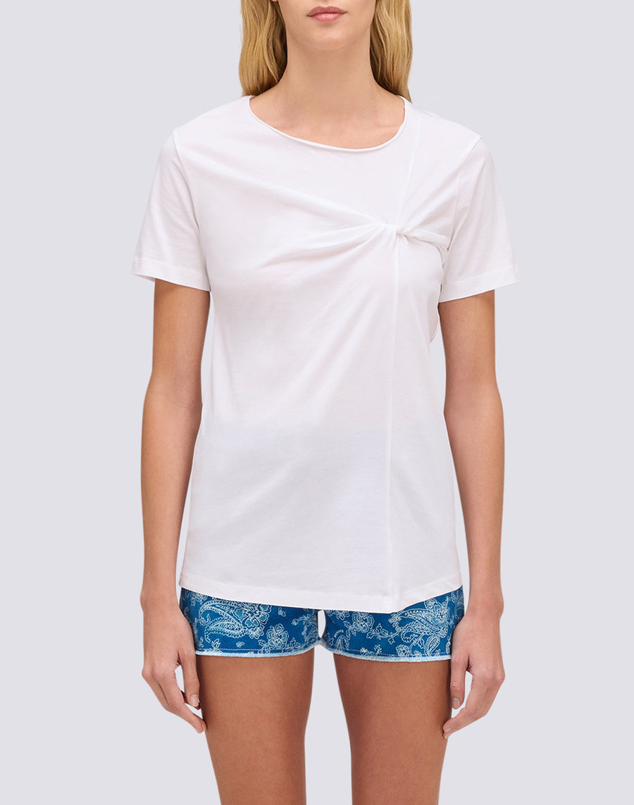 T-SHIRT DONNA CON COLLO AMPIO E NODO FRONTALE