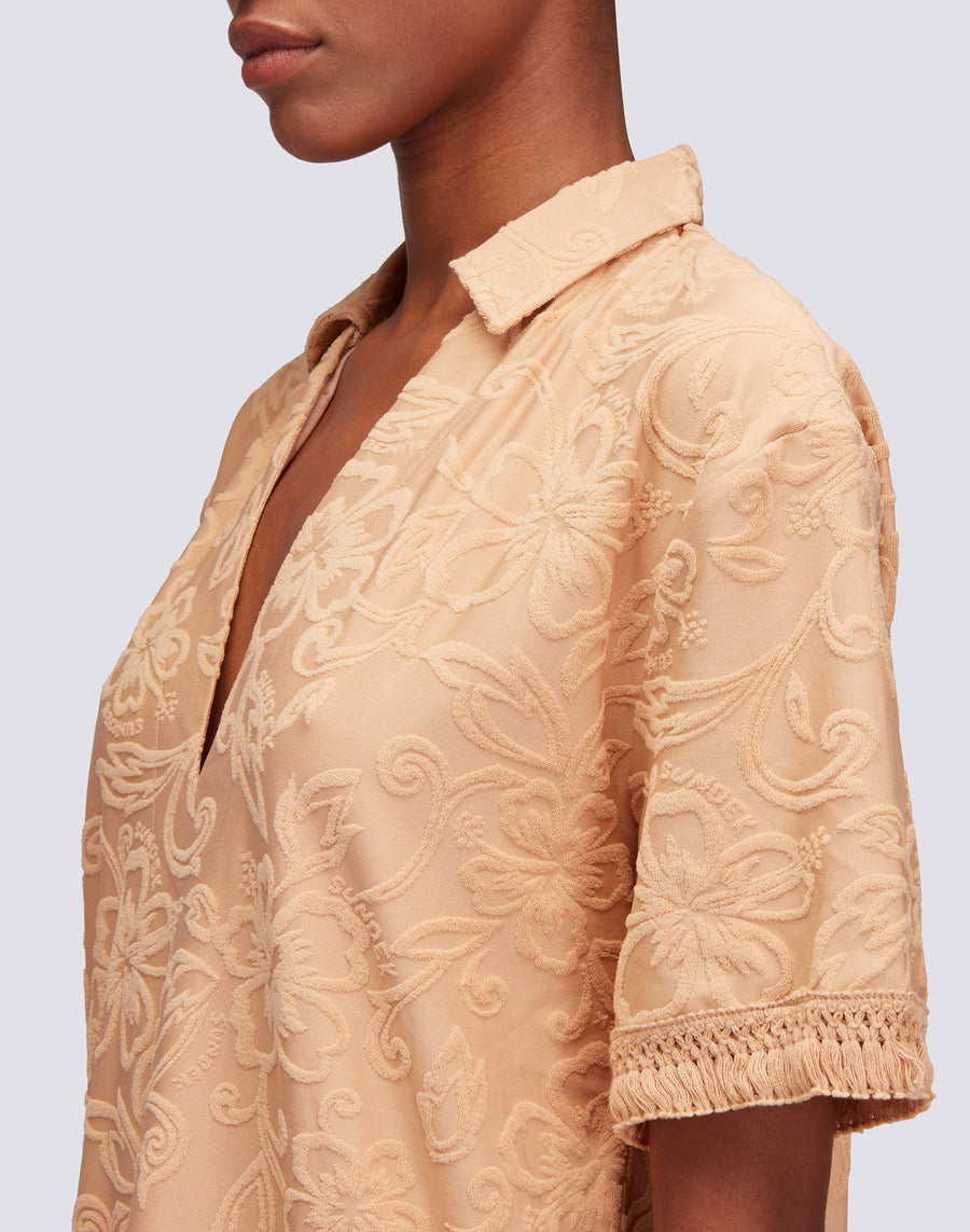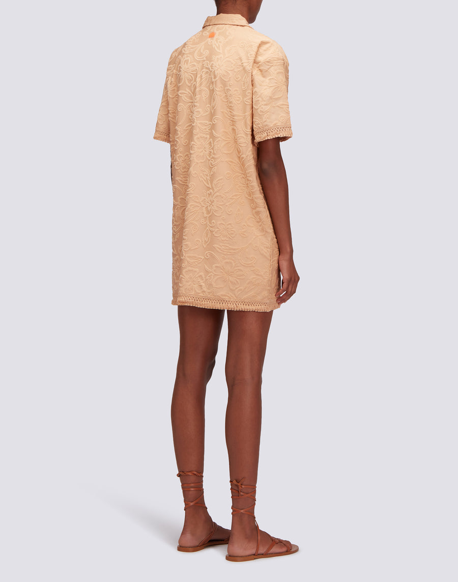 ABITO CORTO CON FRANGE IN SPUGNA JACQUARD