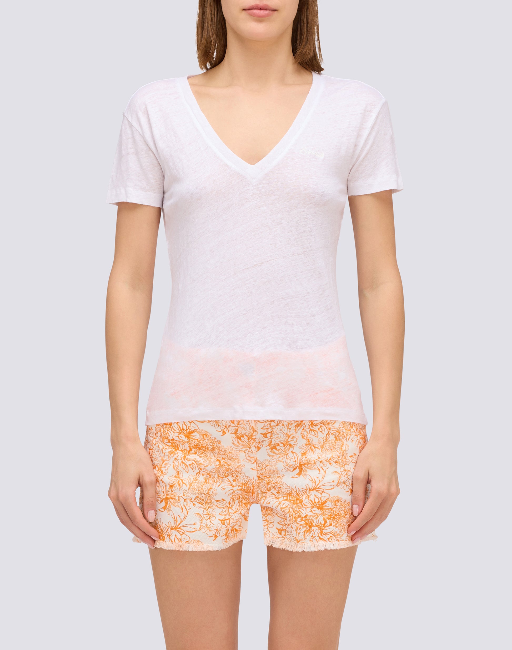 La T-shirt a mezze maniche in lino è l'ideale per l'estate: leggera, fresca e comoda. Realizzata in tessuto di lino di alta qualità, questa t-shirt per donna è perfetta per mantenere una sensazione di freschezza e comfort anche nelle giornate più calde. Disponibile in una varietà di colori, è un must-have per il tuo guardaroba estivo.