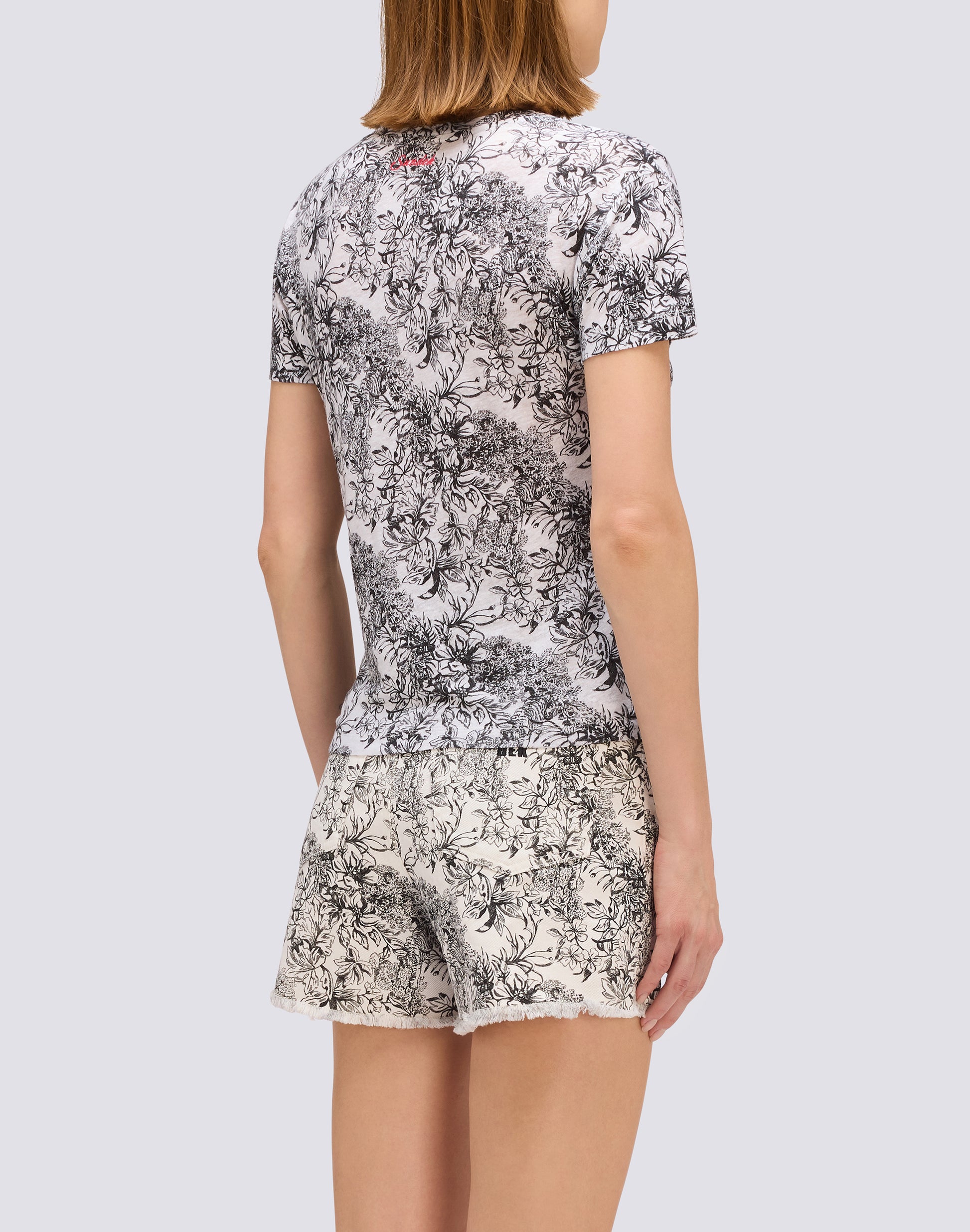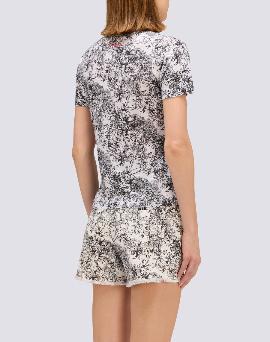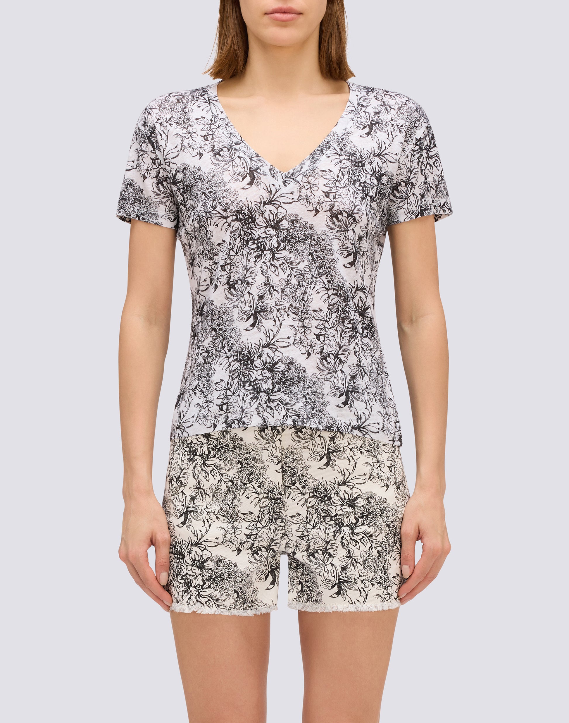 T-SHIRT A MEZZE MANICHE IN LINO CON STAMPA FLEUR DE JOIE